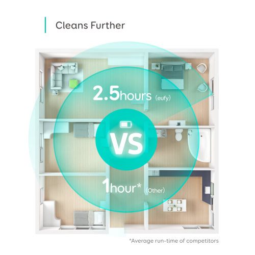 Robotski sesalnik Robovac L70 razvije sesalno moč do 2200 PA, hkrati ima izjemno baterijo, ki zagotavlja do 2.5 ure učinkovitega čiščenja, kar je še 1x več od večine robotskih sesalnikov.