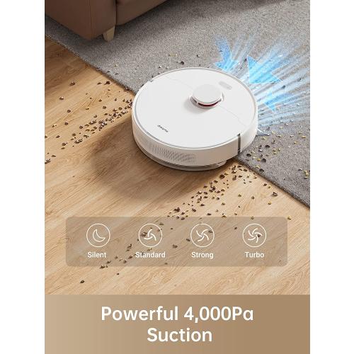 največji sesalni tlak 4000 Pa zlahka dvigne umazanijo s tal in jo odloži v 400 ml posodo za prah. 4 načini sesanja, ki jih lahko izberete, zagotavljajo učinkovito, prilagodljivo čiščenje, medtem ko velika baterija s 5.200 mAh zagotavlja do 180 minut neprekinjenega čiščenja, da pokrijete celo velike domove v enem samem zagonu.